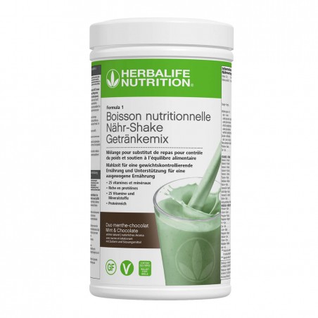 Do you want to consume your Herbalife F1 Mint chocolate shake? It is important to know how to use it and especially the Herbalife dosage. You must use an Herbalife measuring scoop. Thanks to the measuring scoop, you immediately get the right dose (2 scoops for 1 shake). It is recommended to measure two level scoops of your Herbalife mint chocolate powder using the side corresponding to 25 g. Then add one tablespoon of Formula 3. Add 150 ml of soy milk, 160 g of plain yogurt and 20 g of hazelnut powder to your Herbalife mint chocolate powder. Add 4 ice cubes and blend everything using a blender. After blending, your Herbalife mint and chocolate duo shake is ready to enjoy.